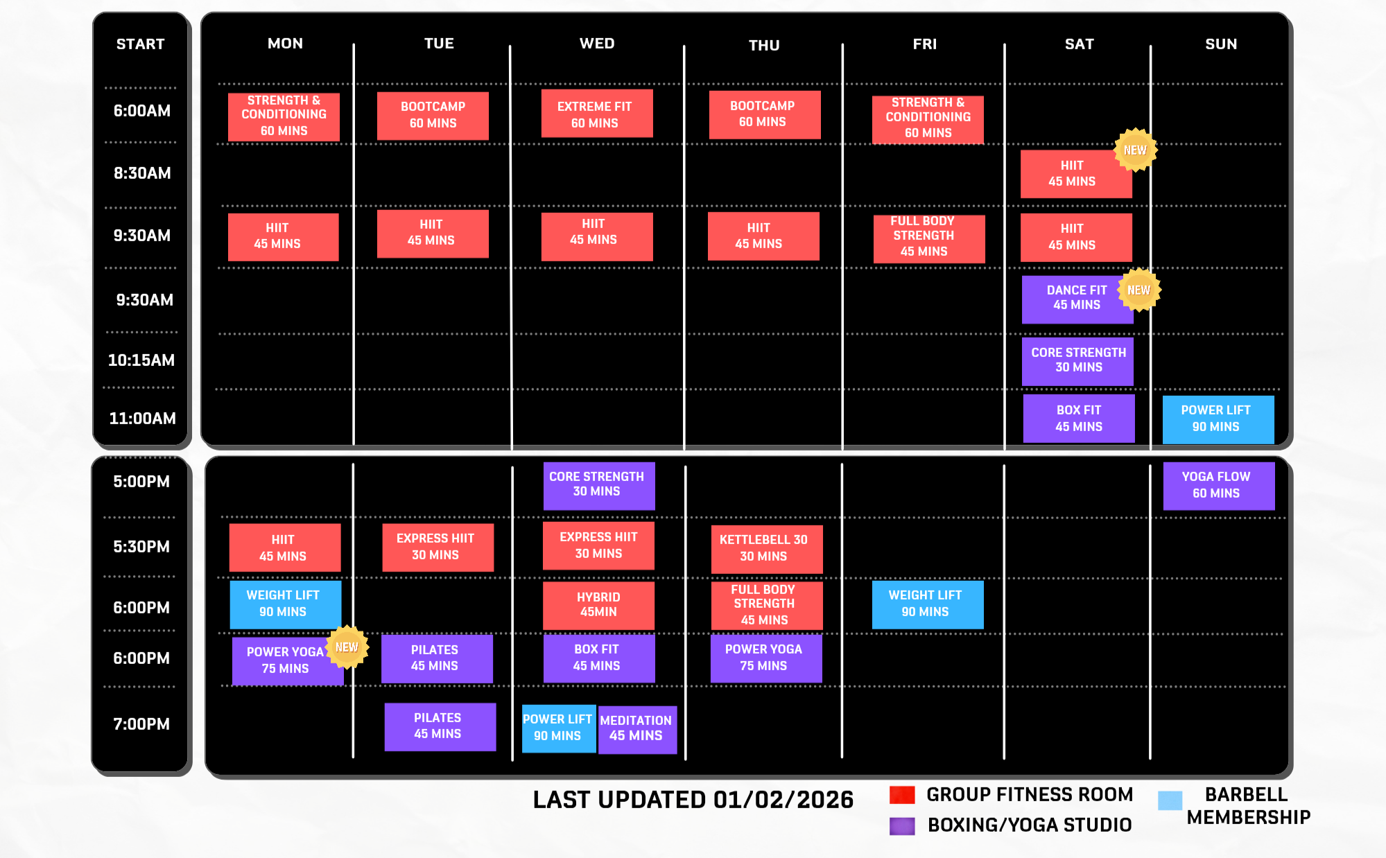 Most classes such as HIIT and BB Fit are actually very similar. However, times and instructors are different due to location and class popularity.